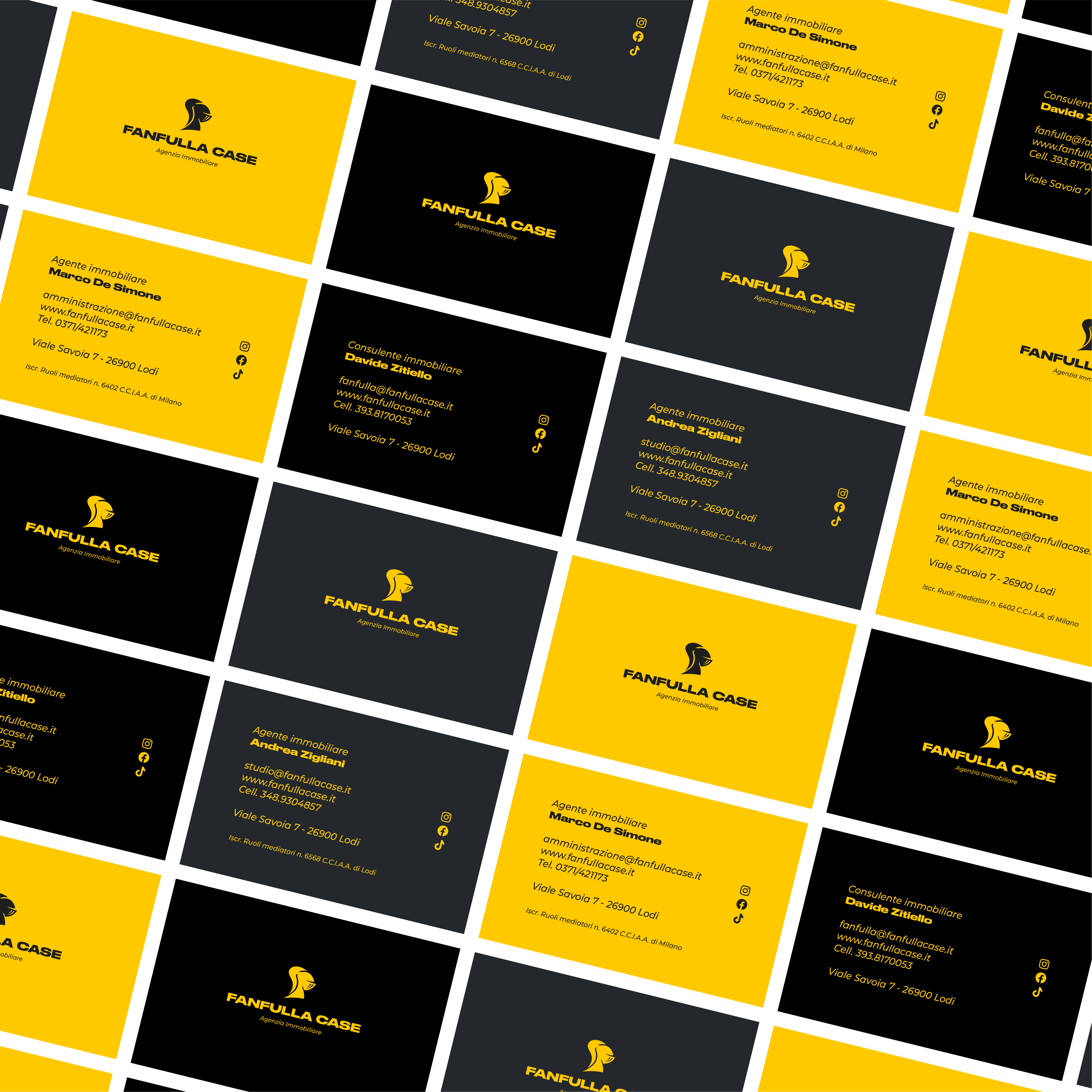 Il nuovo logo reinterpreta in chiave moderna il simbolo storico dell’azienda: l’elmo di Fanfulla. Una forma rinnovata, più professionale e pulita, che mantiene la tradizione ma guarda al futuro. La palette conserva il loro iconico giallo, affiancato da bianco e da un grigio scuro che dona solidità, autorevolezza e maggiore equilibrio visivo. Il risultato è un’identità versatile, riconoscibile e adatta a un pubblico ampio, capace di comunicare affidabilità e presenza.