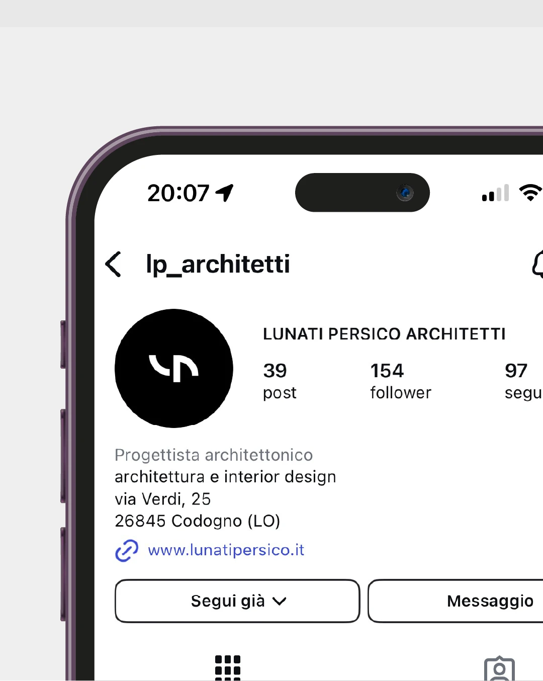 Il logo dello studio nasce dall’idea di unire le lettere L e P come se si incastrassero, ispirandosi ai movimenti presenti nei progetti. Questa combinazione crea un simbolo distintivo, con il nome dello studio riportato al di sotto, trasmettendo modernità, eleganza e perfezione. Minimal, bianco e nero e totalmente scalabile, il logo valorizza la pulizia delle forme e la leggibilità, distinguendosi dai marchi tradizionali del settore.